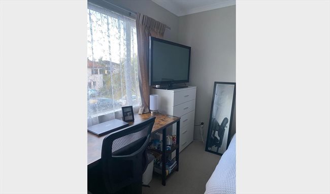 - good size (approx 3.5m x 3.2m) with built-in double wardrobe. Easily fits a queen bed, drawers and desk.