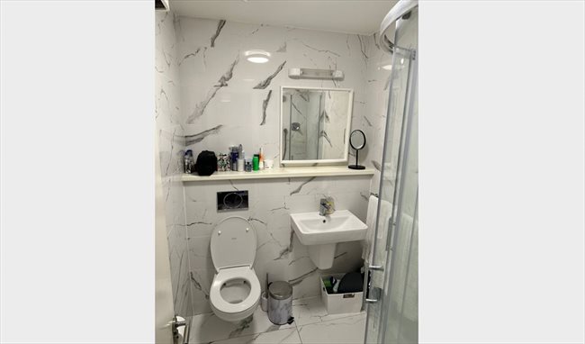 It is a large bedroom with a private bathroom in a new, fully equipped and very quiet apartment. The residence is secure.