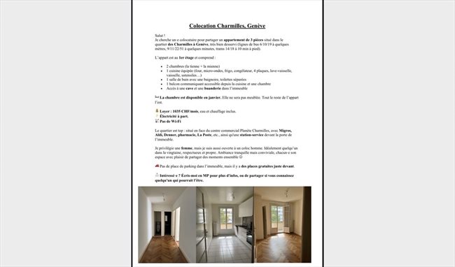 Recherche Colocataire à Genève pour un appartement 3 pièces