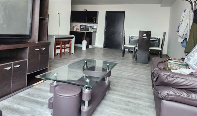 Departamento completamente amueblado, en Residencial Enksa Lindavista, con una habitación disponible. El Residencial se encuentra sobre una Plaza Comercial y cuenta con más de 10 amenidades. La habitación cuenta con clósets y baño propio.
