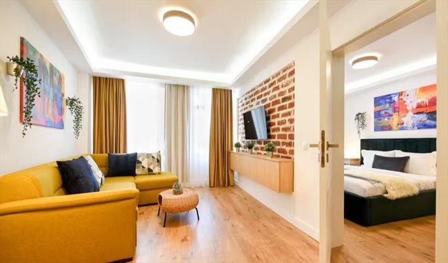 The apartment is fully equipped. The open-plan living area combines a modern design with a functional kitchen, creating a welcoming atmosphere for your stay. In the bedroom, a comfortable double bed and a large wardrobe ensure relaxation and organization.