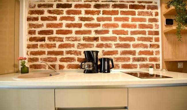 L'appartement est entièrement équipé. L'espace de vie à aire ouverte combine un design moderne avec une cuisine fonctionnelle, créant une atmosphère accueillante pour votre séjour. Dans la chambre, un lit double confortable et une grande armoire assurent détente et organisation.