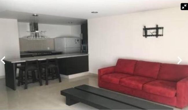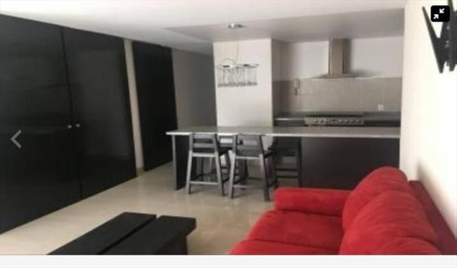 Renta de Departamento tipo Loft en Polanco en el 5º Piso, Orientación Oriente Poniente, 70 m², 1 Recámara, 1 Baño, Doble closet, Cocina equipada, Cuarto de lavado, 1 Lugar de estacionamiento, Vigilancia 24/7, Amueblado con Cama KS, sofá cama, mesa de centro, horno de mo