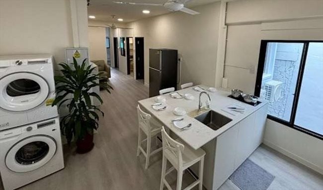 Spacious room with high ceiling (2.8m from floor to drop-down ceiling). Newly renovated and fully furnished with Daikin air-condition, 10“ pocketed single spring mattress with duvet and “Cloud Soft Embroidered” linens, three door wardrobe and 1.2m adjustable height desk (telescopic legs).