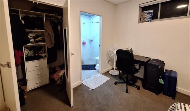 - Private room with ensuite bathroom, double bed, and built-in wardrobe