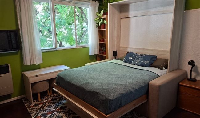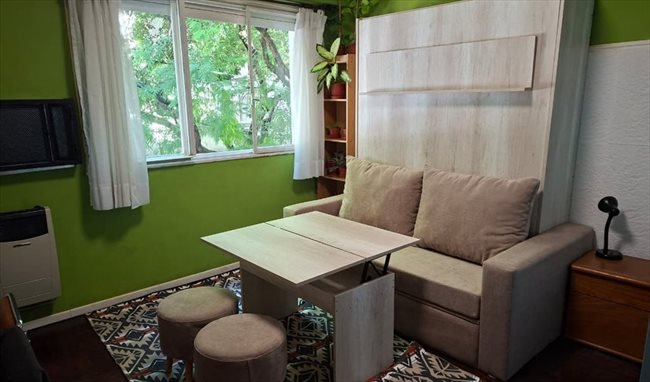 Very bright studio, fully furnished and equipped, featuring a rationalist-style window with excellent natural light. Located in Barrio River (Belgrano), one of the nicest residential areas in Buenos Aires, close to Di Tella University, UBA Ciudad Universitaria, Universidad de Belgrano, Chinatown, Regatas Lake, and the river.