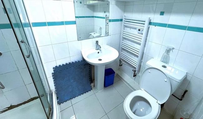 Shared kitchen and shared washroom.