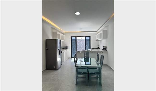 Hermosa habitación amueblada con baño privado y clóset. Desde este alojamiento céntrico se puede tener fácil acceso a todo. A pocas calles de la Condesa y del próximo Gran Centro Comercial Espacio Condesa. CASA Martí es amplia, luminosa y está ubicada en zona comercial. En la planta baja hay locales comerciales y la planta alta solo es casa habitación con hermosa terraza. Las 3 recámaras se encuentran al fondo por lo que o se percibe el ruido. Cada habitación cuenta con cerradura. Las áreas comunes tienen gran espacio.