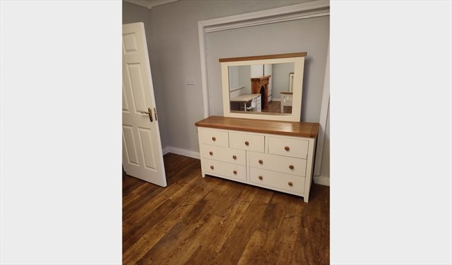 Large furnished room with king size bed and separate back entrance to rent in a newly renovated shared large house in Monasterevin co kildare. Shared bathroom with one other tenant only. The house is centrally located close to SuperValu, coffee shop, chemist, gym, garden shop ect. Bus stop in front of house serving kildare area and Green bus to Dublin airport. 5 professionals polite males already living in the house. Electric is pay as you go meter paid by tenants sharing. WiFi, heating bin bills included in the rent. Available immediately.
