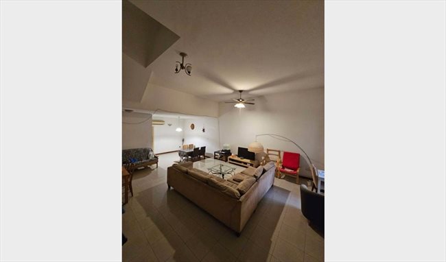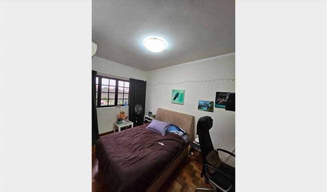 Spacious bedroom in a landed house. The room gets lots of sunlight, has an attached bathroom and comes furnished with plenty of storage and a mini-fridge. The neighborhood is lovely and very quiet.