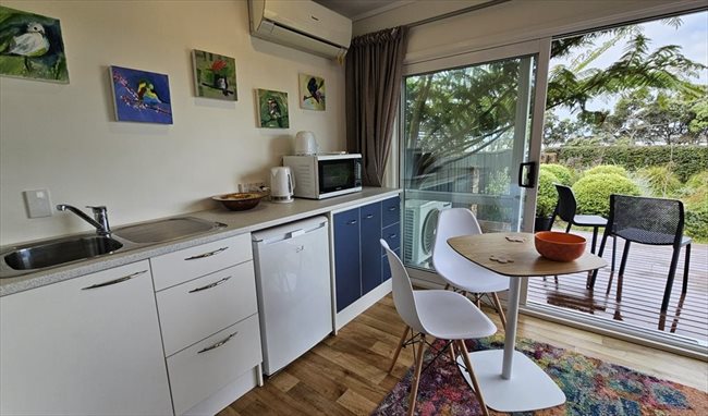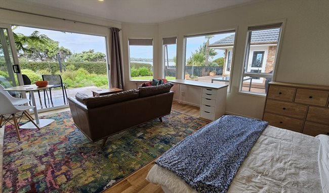 Its private entrance opens onto our garden with a gate directly onto the Tamaki Path running along the river for scenic walks, runs, rides, or paddles anytime. The views east over the river from the deck and living area often include striking rainbows and sunrises, and you can hear the gentle sound of the tides come in and out each day!